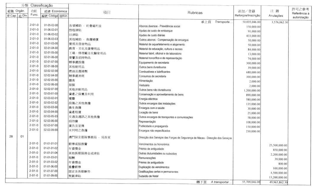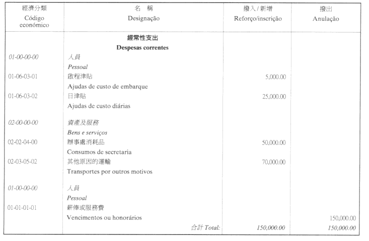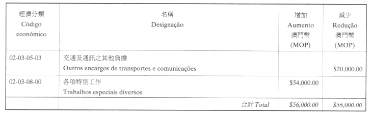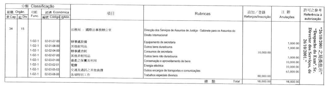 根據九月二十七日第53/93/M號法令第十九條規定,現刊登有關二零零一年度旅遊基金預算之修改,該修改獲社會文化司司長在二零零一年十一月一日批示核准: