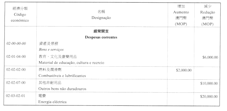 根據一九九三年九月二十七日第53/93/M號法令第十九條規定,茲公佈立法會執行委員會於二零零一年十月十七日議決所批准的立法會二零零一年經濟年度本身預算之修改。