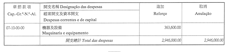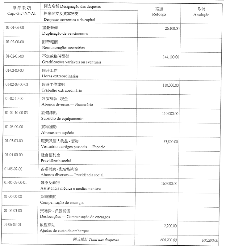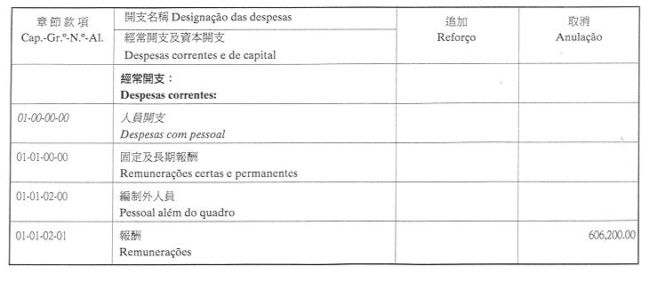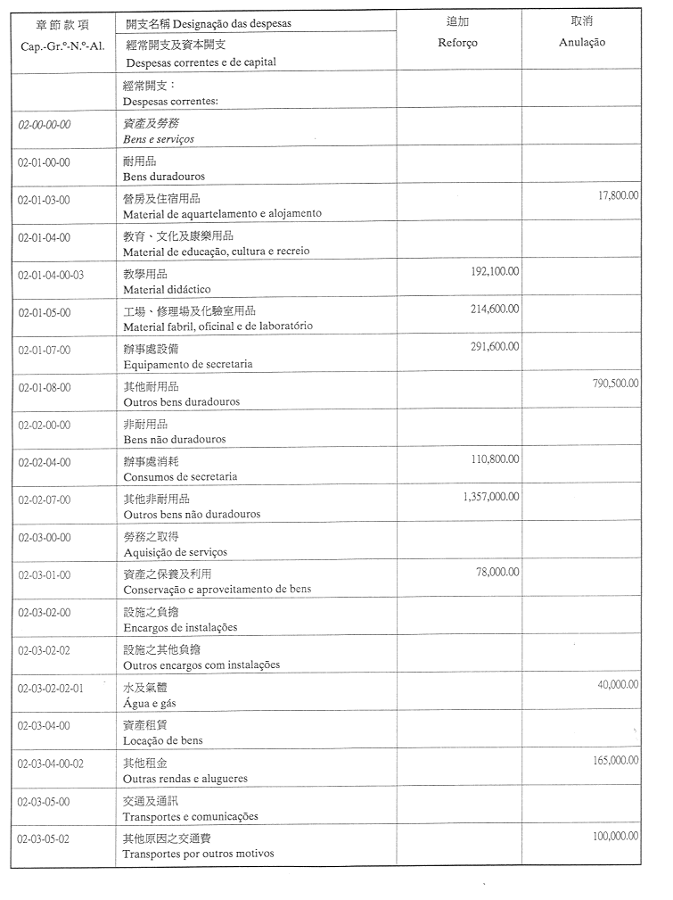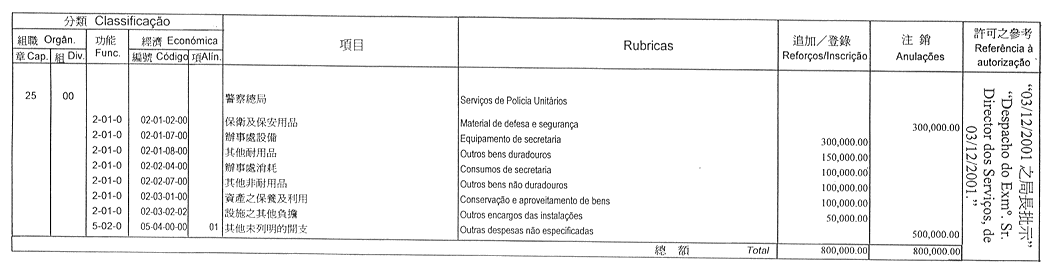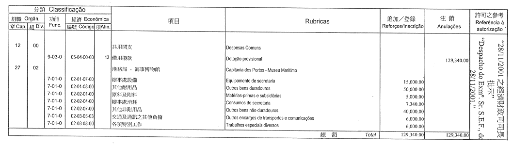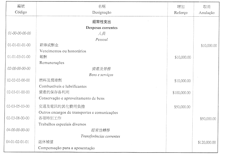 根據第31/2000號行政法規第二十三條及九月二十七日第53/93/M號法令第十九條之規定,茲將廉政專員於二零零一年十一月二十九日以批示核准之二零零一年廉政公署本身預算第04/CCAC/2001號預算修改刊登如下: