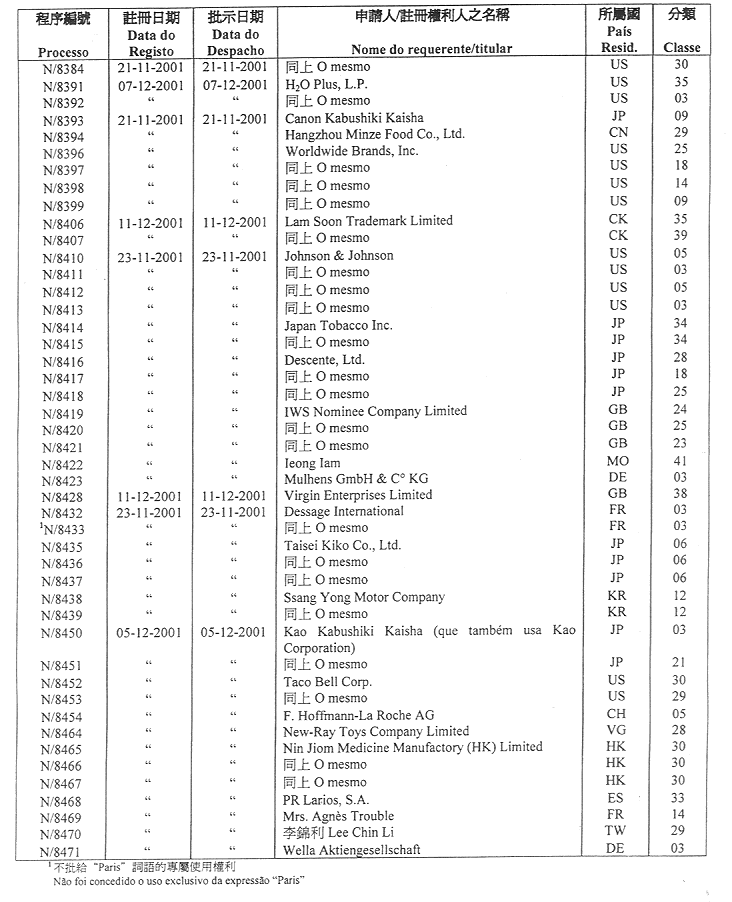 2001年3月14日第十一期,第二組之《澳門特別行政區公報》: