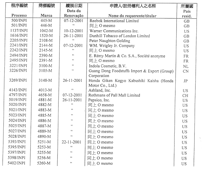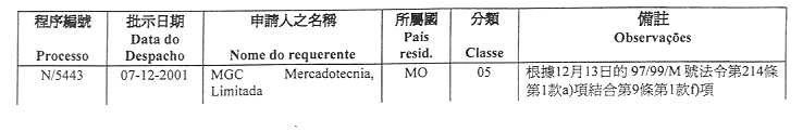 根據十二月十三日第97/99/M號法令第十條及第二百一十條,以下公布本地區商標註冊之請求書,並按照相同法規第二百一十一條第一款,由通告公布日期開始計算兩個月期限內提出聲明異議。