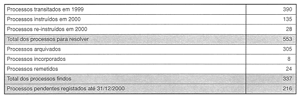 - Quadro IV Número de processos instruídos em 2000 (segundo a origem)
