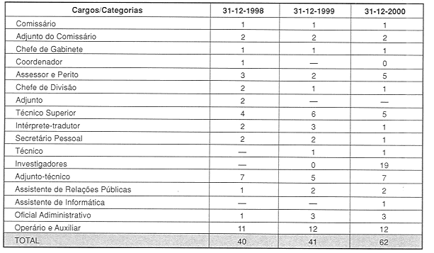 Com a aprovação pela Assembleia Legislativa da nova Lei Orgânica do CCAC e a publicação do novo Regulamento Administrativo que a complementou, foi aumentada a dotação de pessoal. Porém o recrutamento de pessoal necessitava de tempo, pelo que a maior parte do pessoal cuja admissão se previa no início de 2000 só iniciou funções ao longo do segundo semestre do ano;
