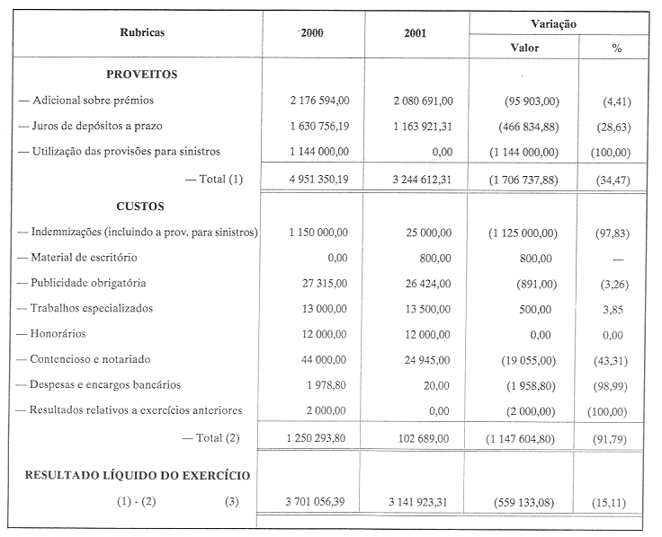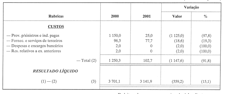 • Relativamente à situação líquida, o resultado do exercício de 2001 teve uma redução de 15,1%, enquanto que, na reserva geral, o aumento de 14,1% correspondeu à incorporação na íntegra do resultado líquido do ano precedente.