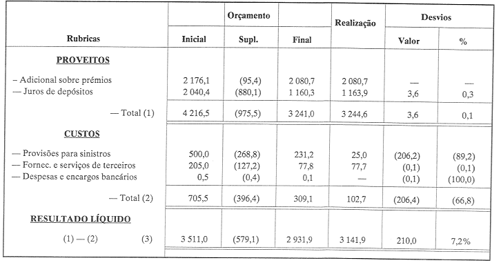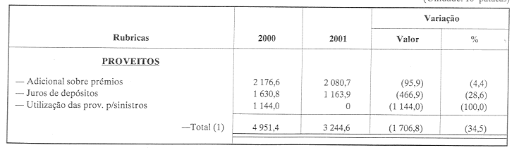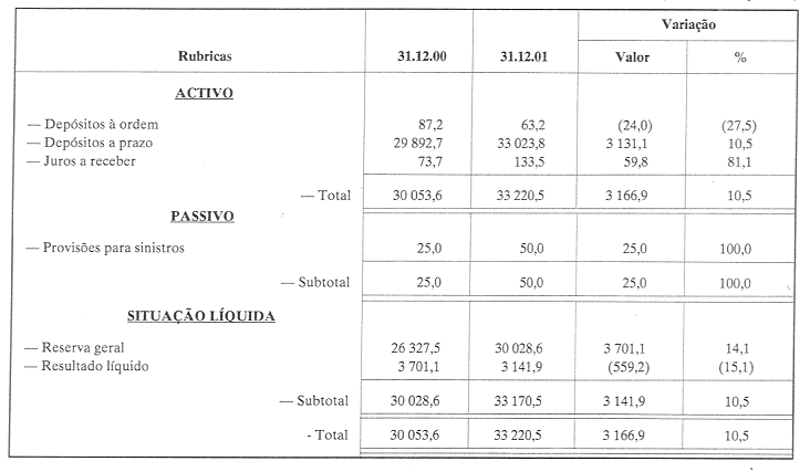 No final de 2001, a situação do balanço do FGAM podia ser sintetizada da seguinte forma: