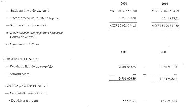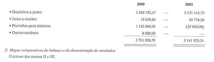 4. Notas explicativas às contas respeitantes ao exercício de 2001