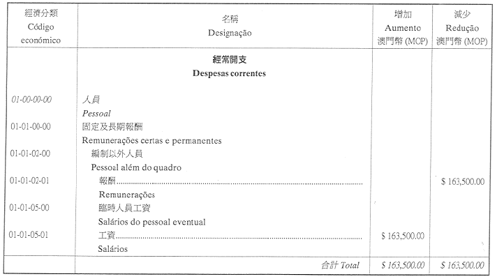 Jerónimo Silveira de Souza,第一職階熟練工人,編號015901,薪俸點為150,自二零零二年六月二日起生效;