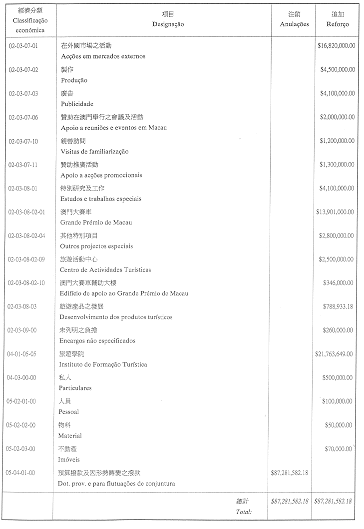 根據九月二十七日第53/93/M號法令第十九條規定,現刊登有關二零零二年度旅遊基金預算之修改,該修改獲社會文化司司長在二零零二年四月二十六日及經濟財政司司長在二零零二年五月十四日批示核准: