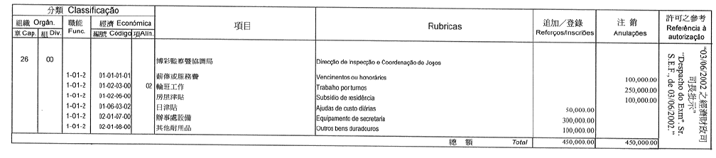 按照經濟財政司司長於二零零二年五月二十日之批示: