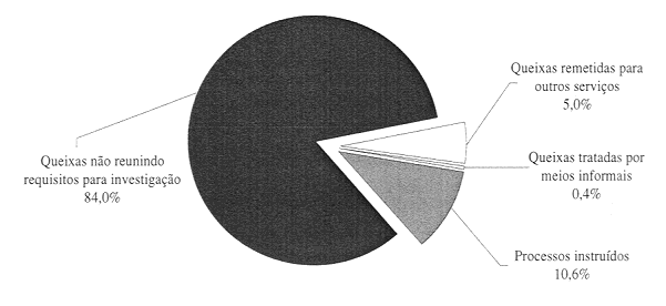 Dos 134 processos instruídos, 112 respeitam a casos criminais e os remanescentes 22 à provedoria de justiça. O CCAC tem vindo a registar, em dois anos consecutivos, um número de processos respeitantes a casos criminais superior ao dos do âmbito de provedoria de justiça. Essa situação ficou a dever-se à adopção de meios informais e, quando entendido conveniente, à remessa de queixas aos serviços competentes na solução da maioria dos casos da área de provedoria de justiça, permitindo, assim, que os problemas em causa sejam solucionados de uma forma atempada, rápida e eficaz. Por outro lado, nos últimos dois anos, o CCAC conseguiu também dar uma resposta rápida às denúncias apresentadas pelos cidadãos e apurar um número significativo de casos de alegada corrupção ou de fraude, o que veio a contribuir para o aumento da confiança da população nesta instituição. Ao mesmo tempo, o esforço envidado pelos órgãos de comunicação social, quanto à sensibilização da população para a importância da incorruptibilidade e para as consequências negativas da corrupção, contribuiu igualmente para o aumento das denúncias nesse sentido. Estas as razões que conduziram ao aumento do número de processos instruídos de natureza penal.