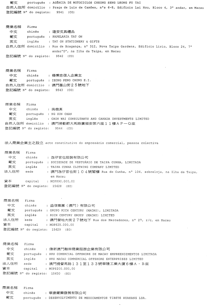 二零零二年七月十七日於商業及汽車登記局——局長 譚佩雯