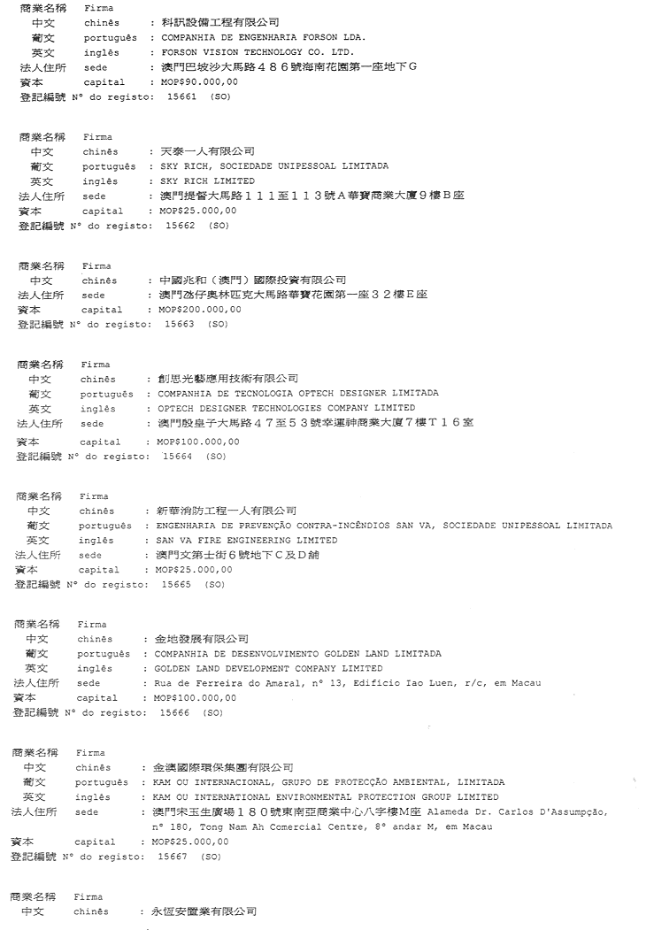 商業及動產登記局佈告