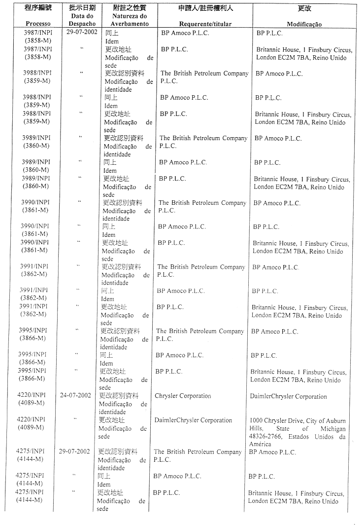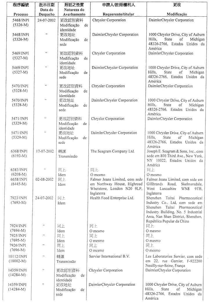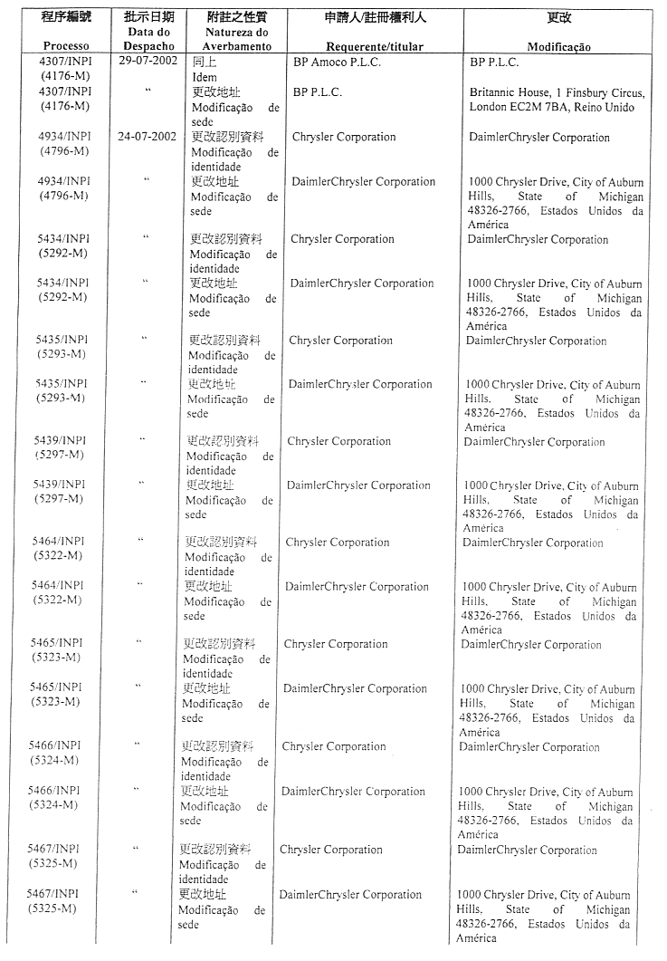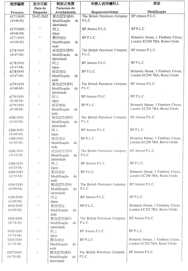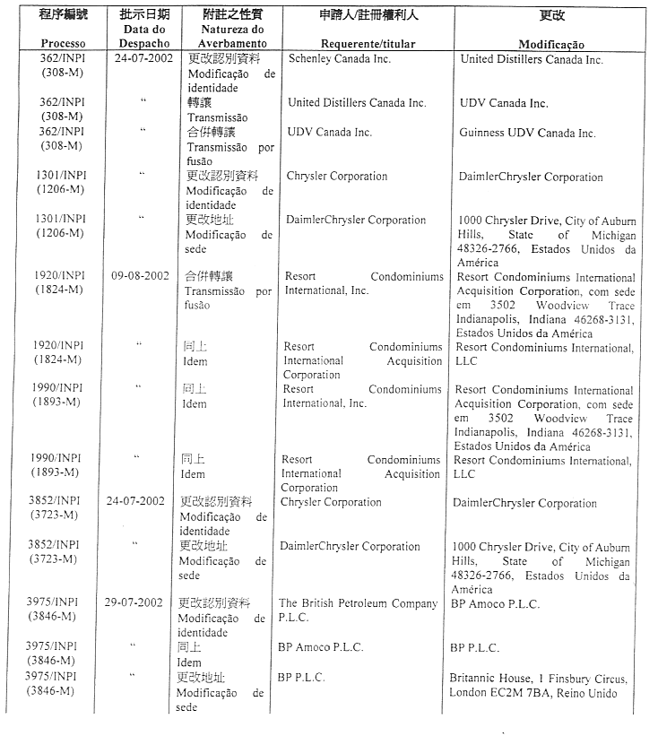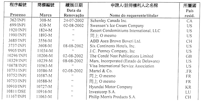 商標編號N/9190及N/9191 — 申請人的地址,原文為:"310 North Avenue, N.W., Georgia 30313 Estados Unidos da América"應改為:"310 North Avenue, N.W., Atlanta, Georgia 30313, Estados Unidos da América"。