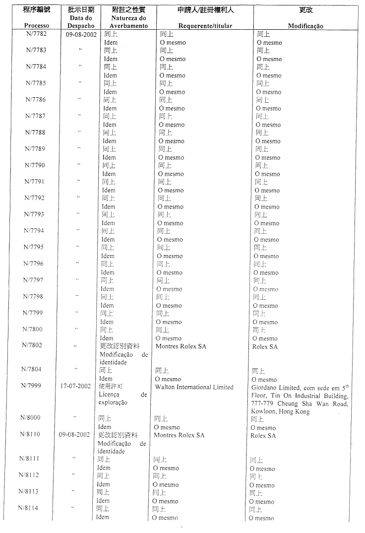 2002年8月7日第32期,第二組之《澳門特別行政區公報》: