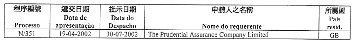 申請人:Companhia de Seguros de Macau Vida, S.A.