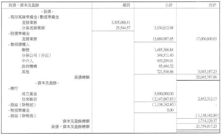 由於汽車保險業務賠償金額較上年度有顯著增加,所以本公司在本年度錄得虧損為澳門幣一百一十三萬八千一百八十二元八角。