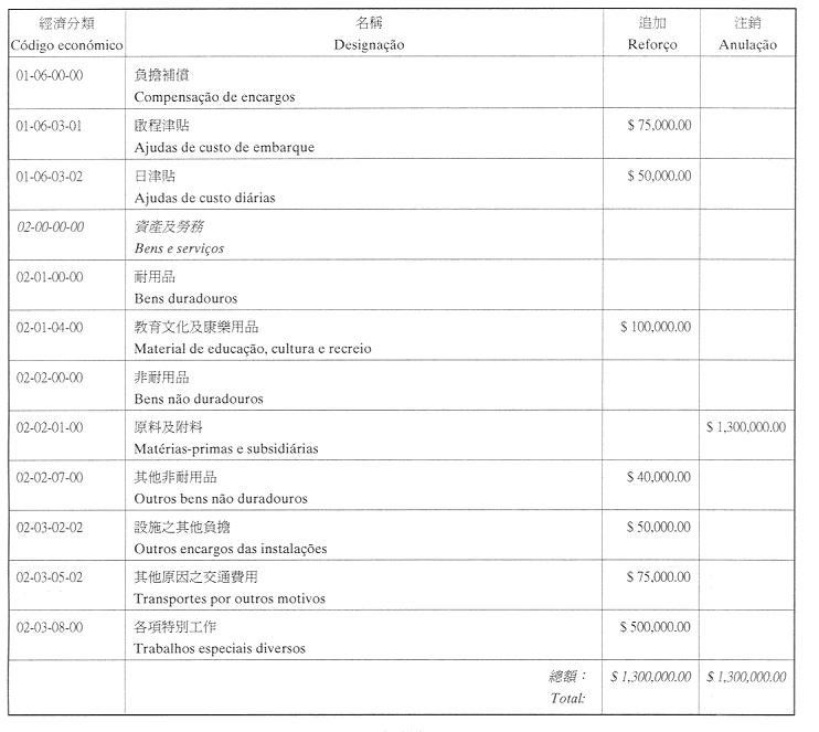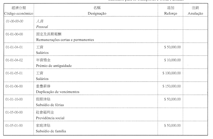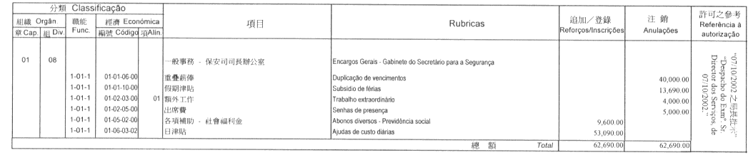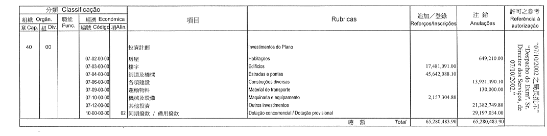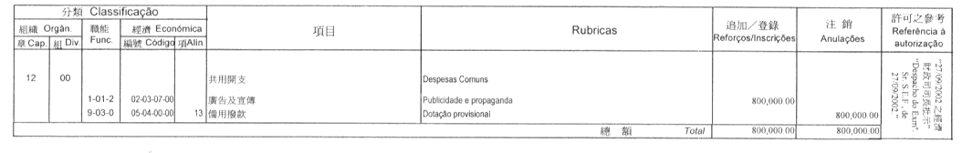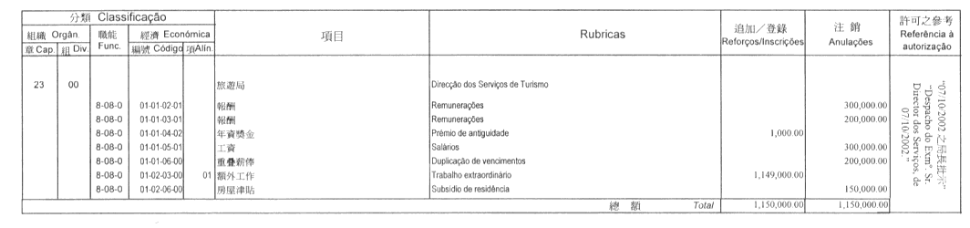 - De acordo com o Despacho n.º 17/GM/87, de 30 de Abril, se publicam as seguintes transferências de verbas (OR/2002), autorizadas nos termos do n.º 3 do artigo 21.º do Decreto-Lei n.º 41/83/M, de 21 de Novembro, na redacção dada pelo artigo 1.º do Decreto-Lei n.º 22/87/M, de 27 de Abril:
