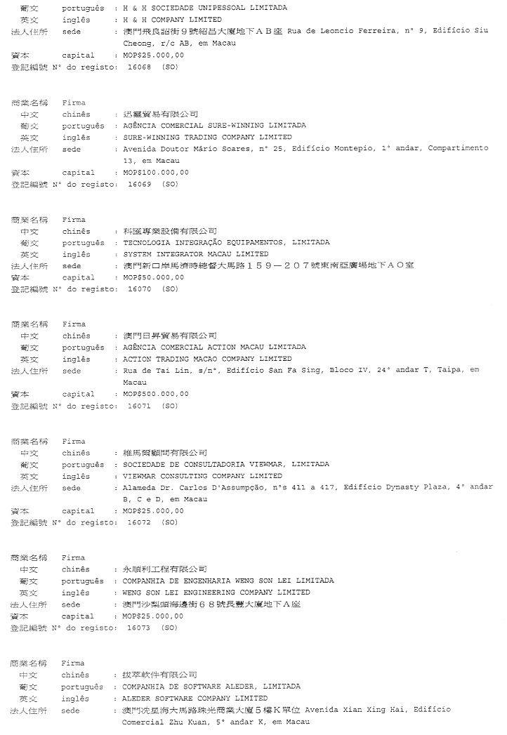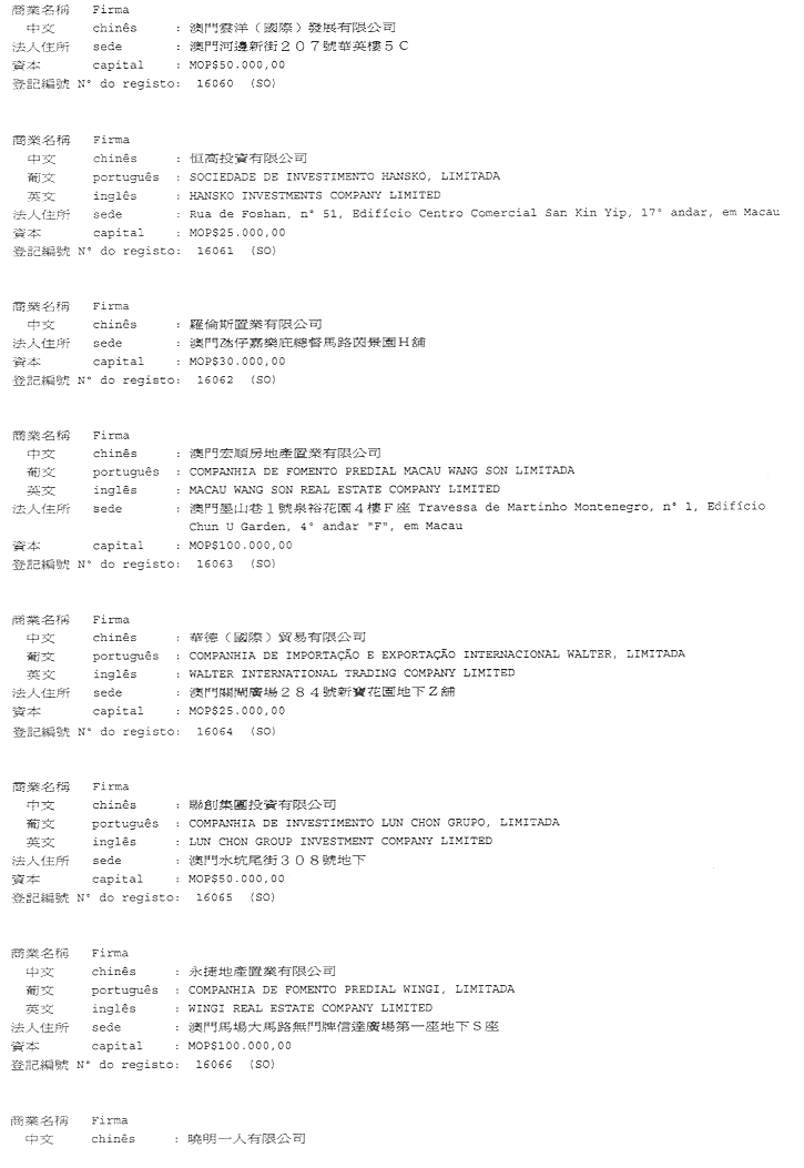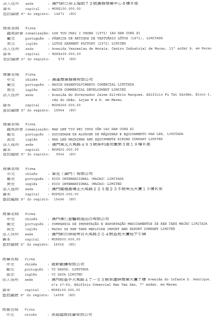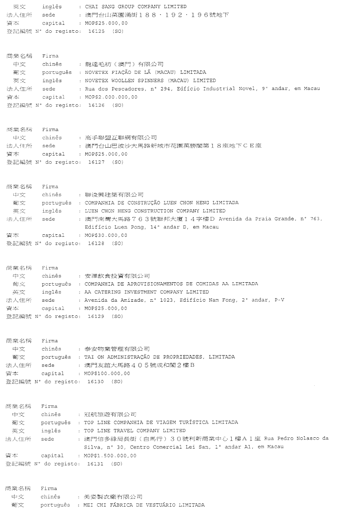二零零二年十一月十二日於商業及動產登記局——代局長 Leonor Madeira de Carvalho.