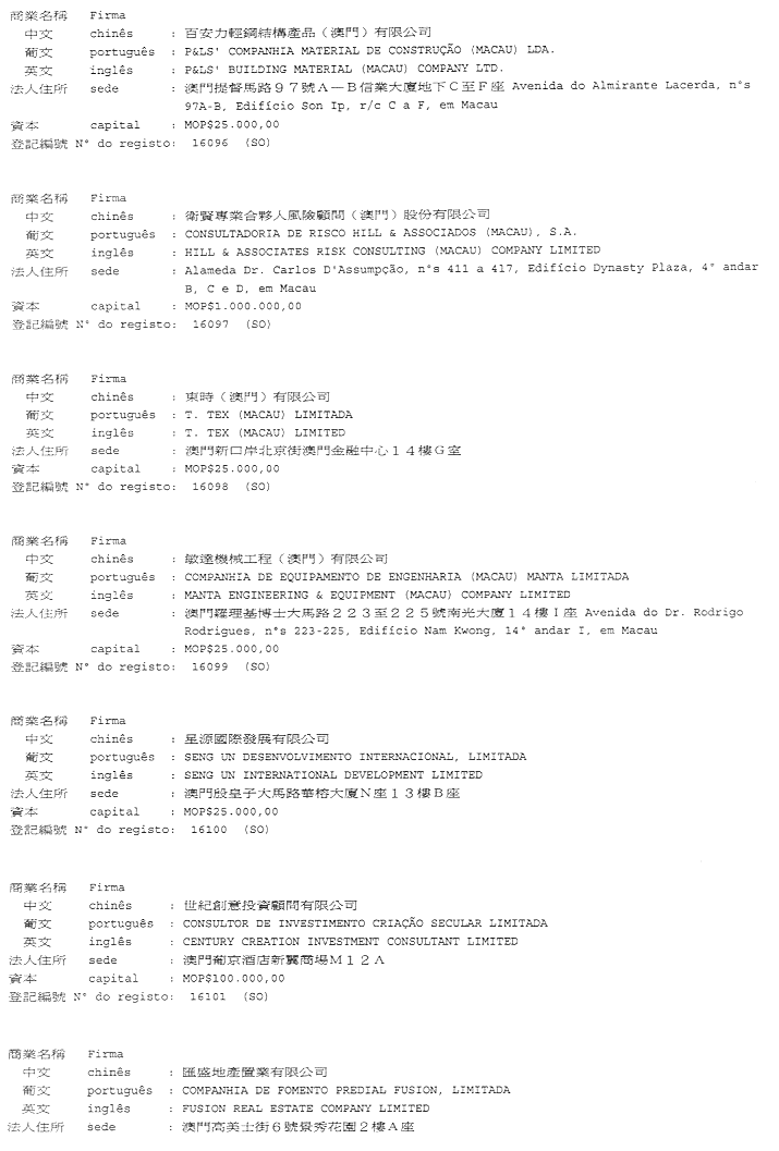 商業及動產登記局佈告