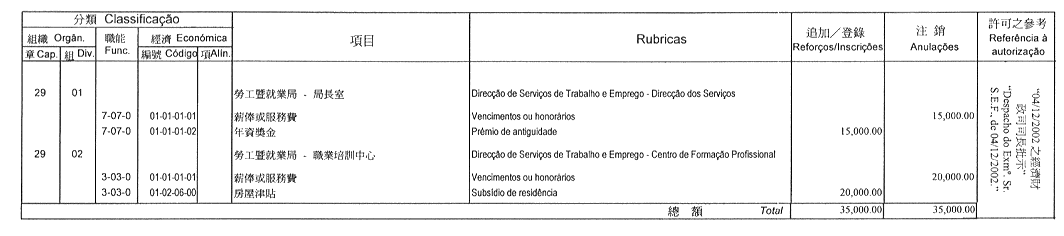 根據九月二十七日第53/93/M號法令第十九條的規定,現刊登有關二零零二年度旅遊基金內之澳門大賽車獨立預算之修改,該修改獲社會文化司司長在二零零二年十二月十六日批示核准: