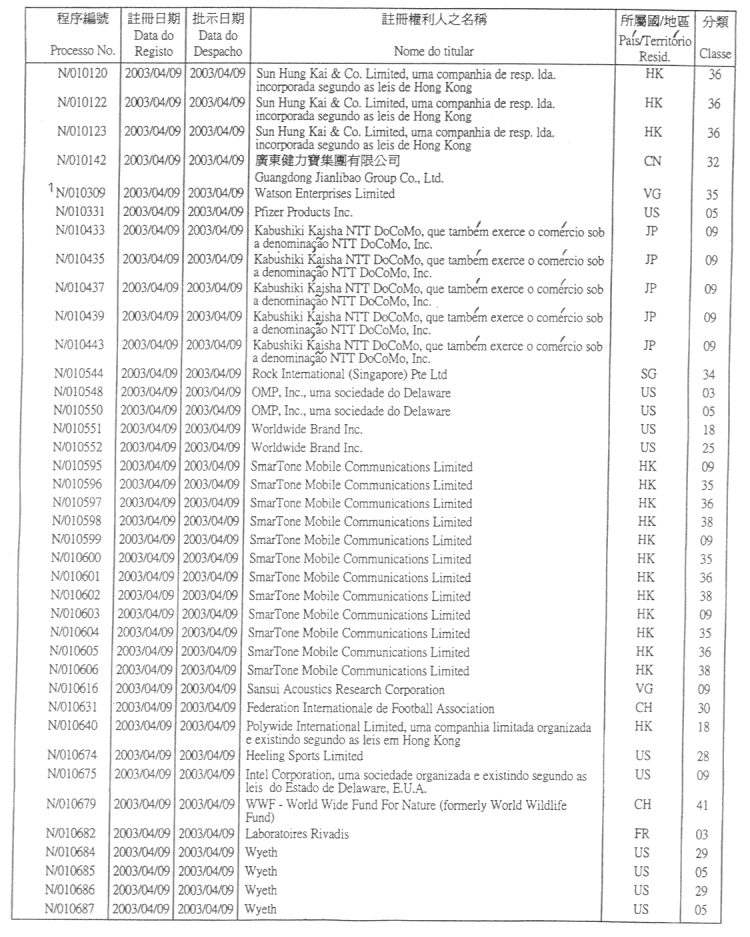 Boletim Oficial da RAEM n.º 14, II Série, de 2 de Abril de 2003: