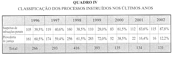 - Quadro IV Classificação dos Processos Instruídos nos Últimos Anos