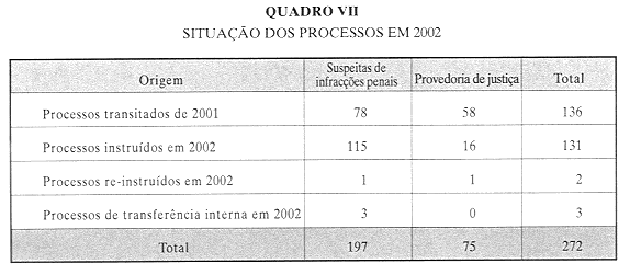 - Quadro IX Processos Criminais Instruídos em 2002 (segundo a origem)