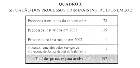 - Quadro X Situação dos Processos Criminais Instruídos em 2002