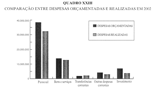 - Quadro XXIII Comparação entre Despesas Orçamentais e Realizadas em 2002
