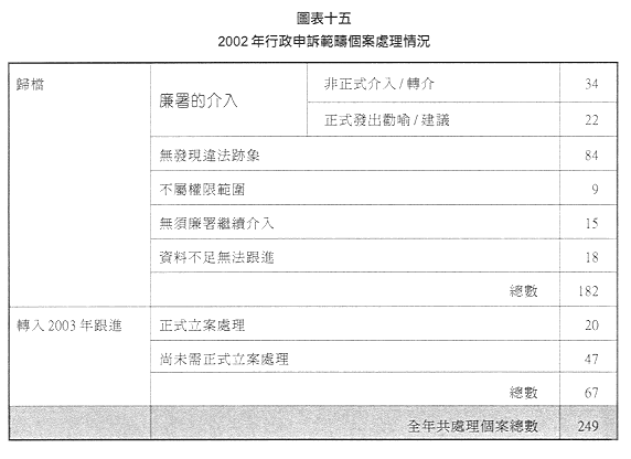 - 圖表十五 2002年行政申訴範疇個案處理情況