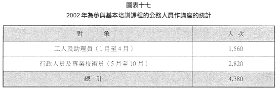 - 圖表十七 2002年為參與基本培訓課程的公務人員作講座的統計