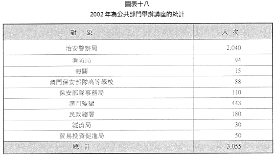 - 圖表十八 2002年為公共部門舉辦講座的統計