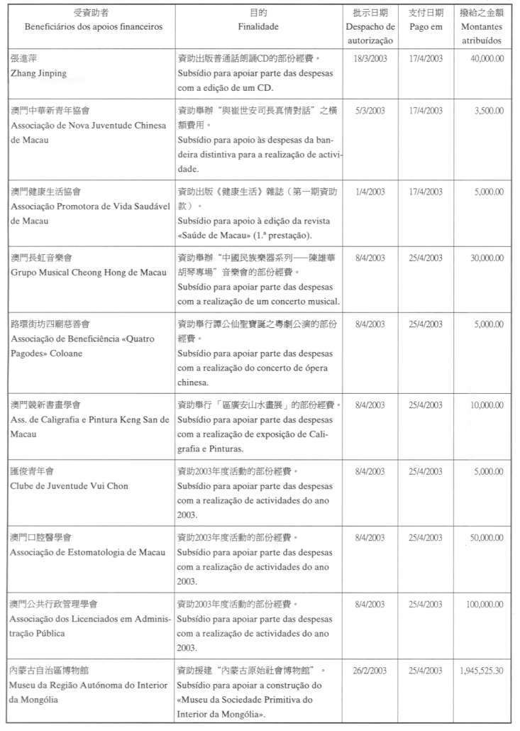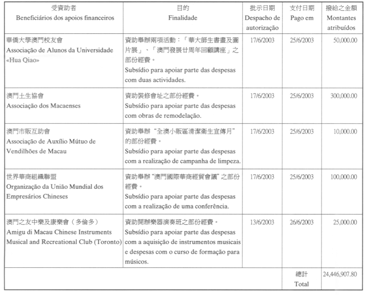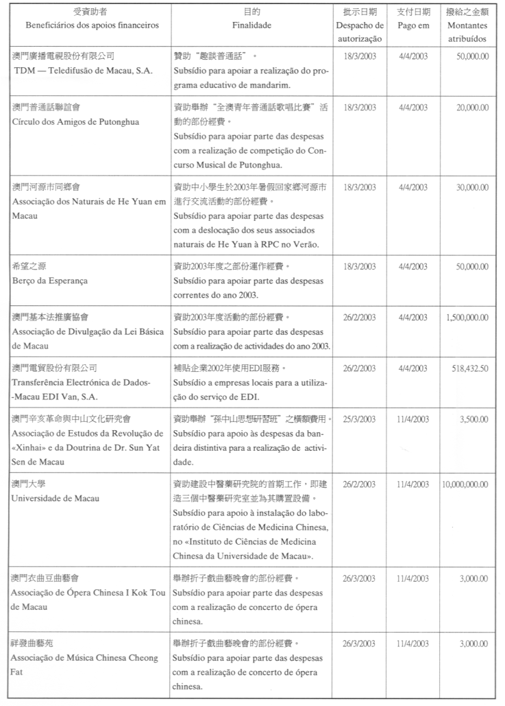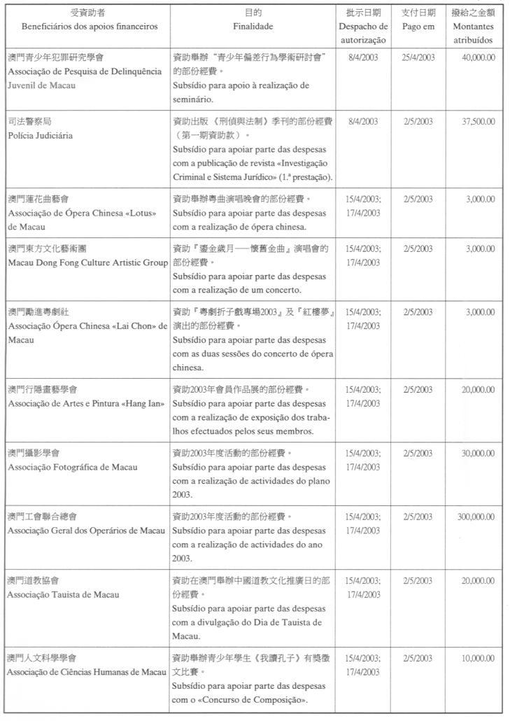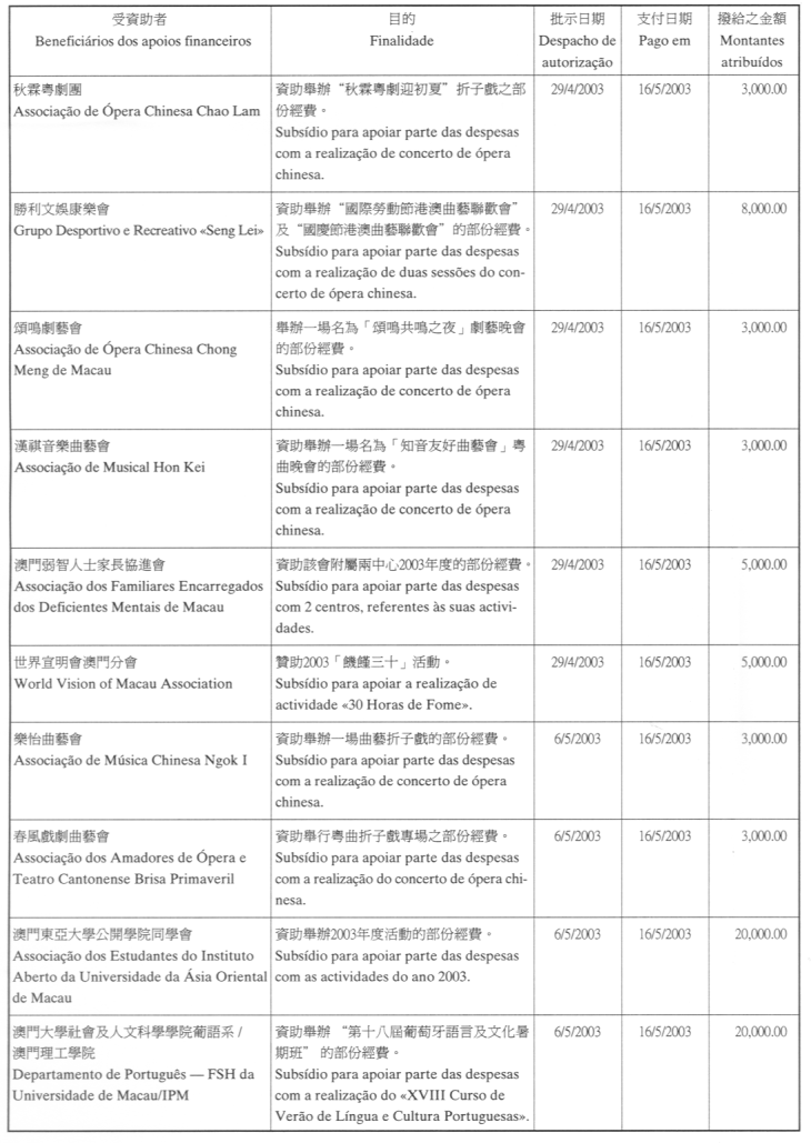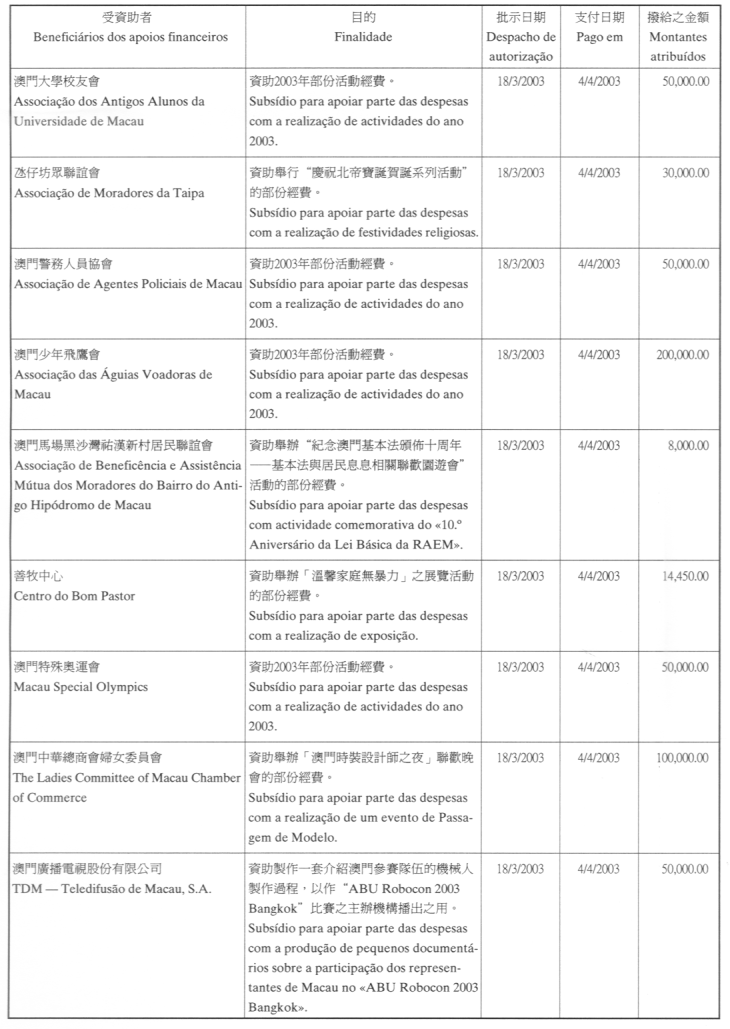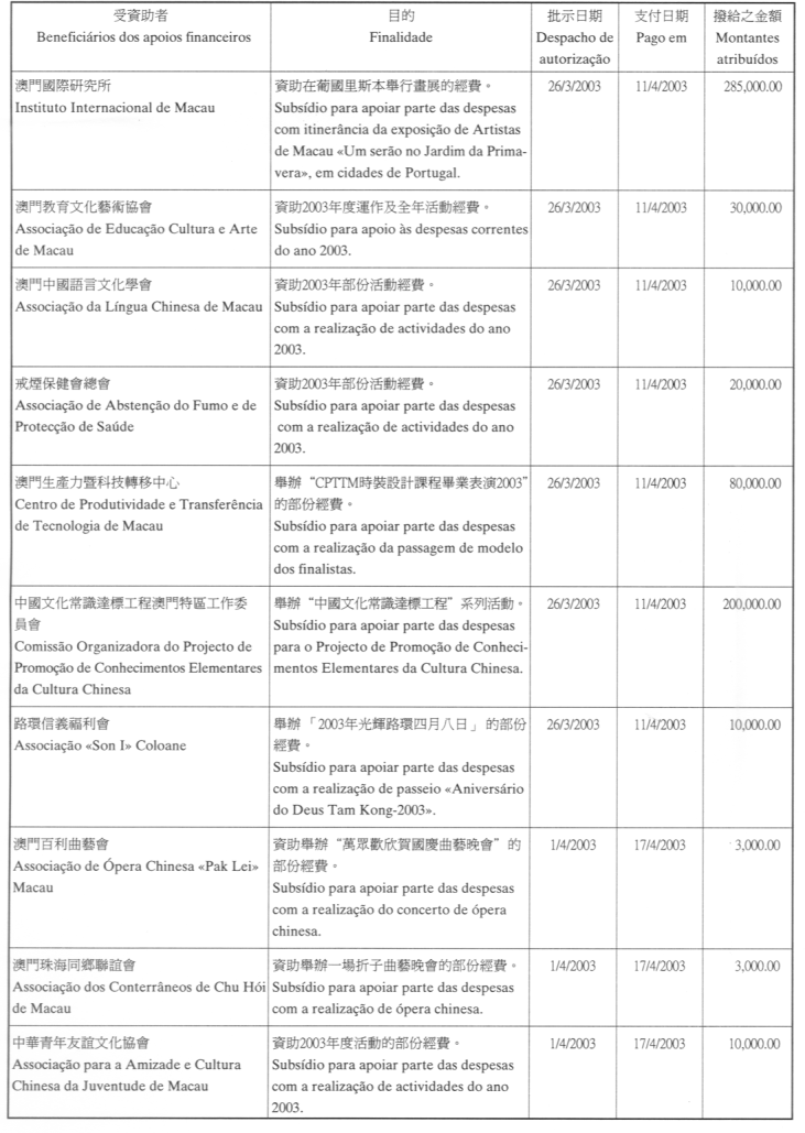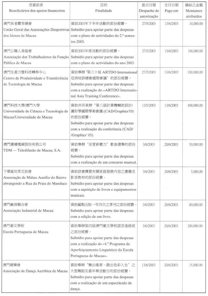 澳門格蘭披治大賽車委員會宣佈,根據社會文化司司長於二零零三年七月十日作出的批示,現就向第五十屆澳門格蘭披治大賽車提供服務作公開競投: