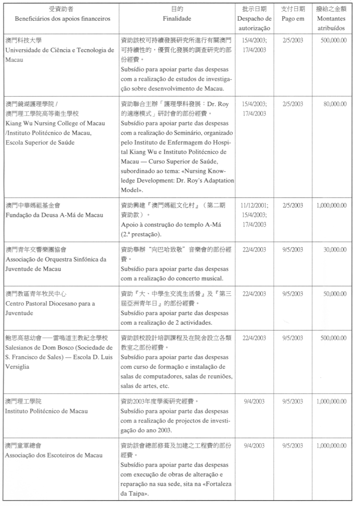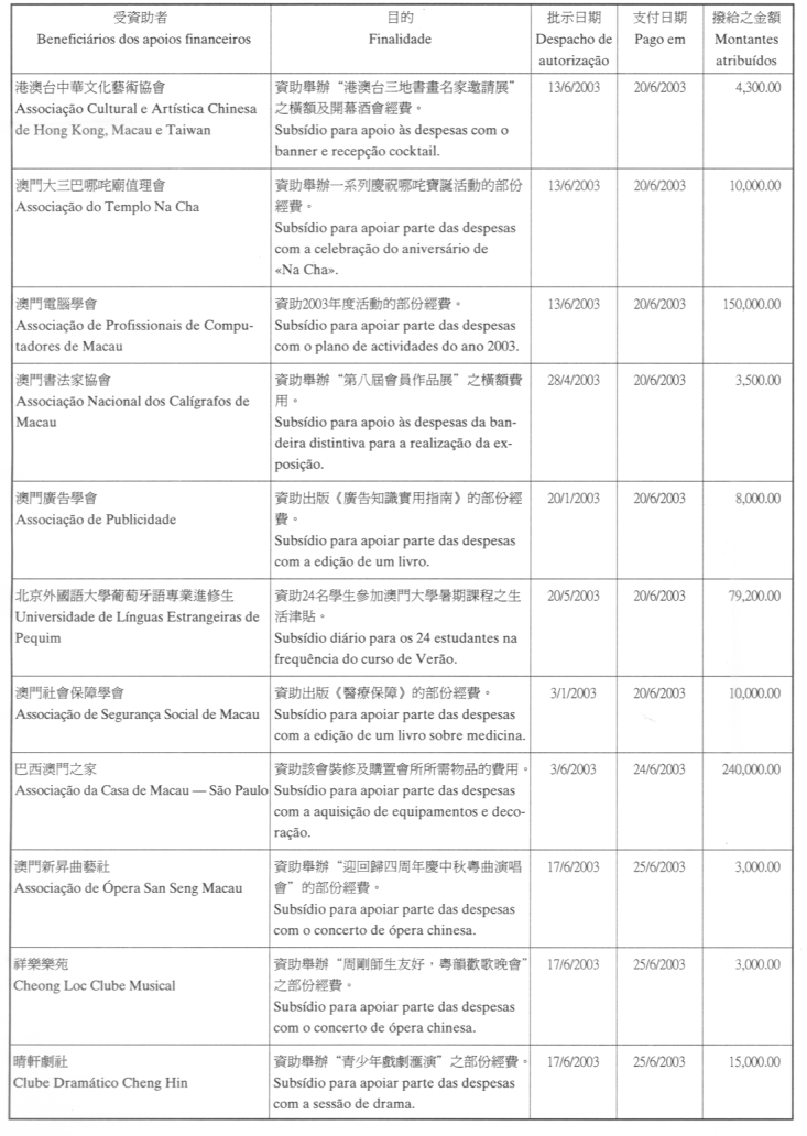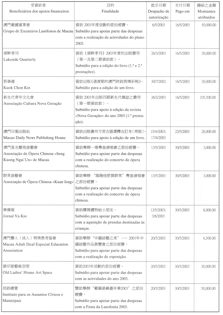 澳門格蘭披治大賽車委員會宣佈,根據社會文化司司長於二零零三年七月一日作出的批示,現就向第五十屆澳門格蘭披治大賽車提供服務作公開競投: