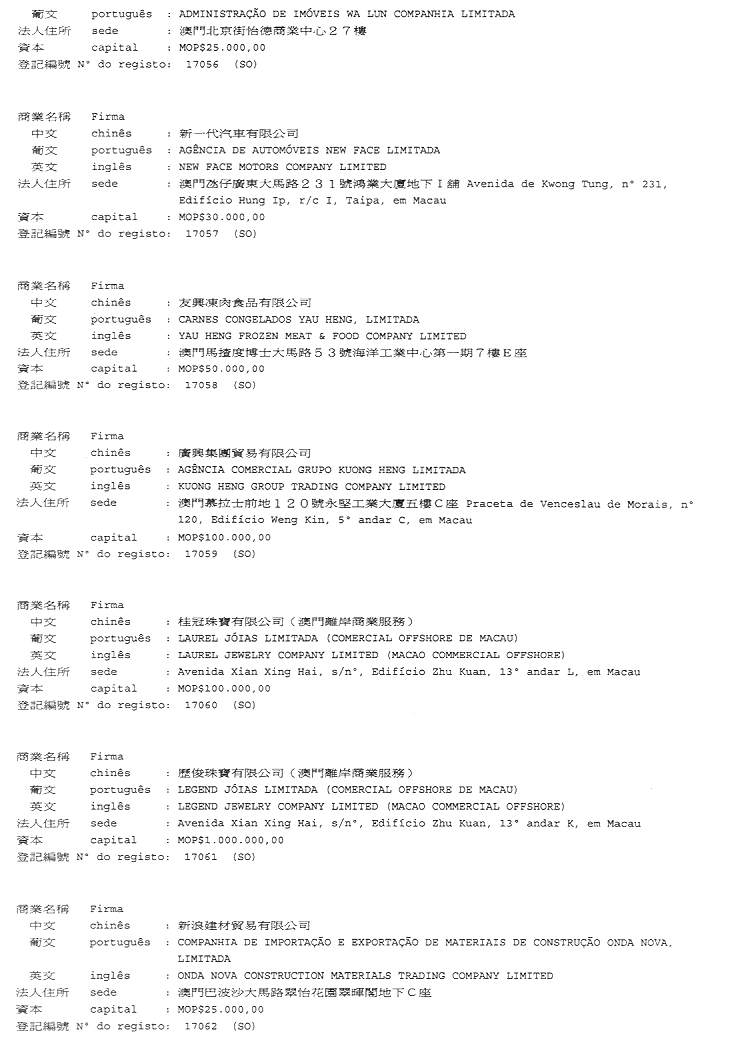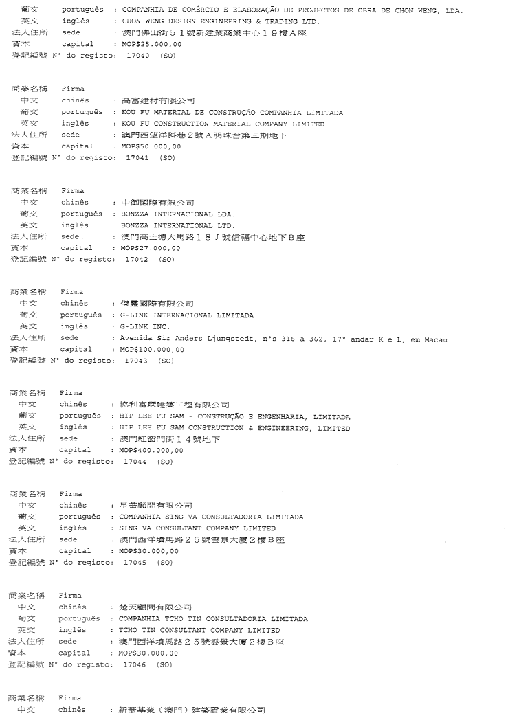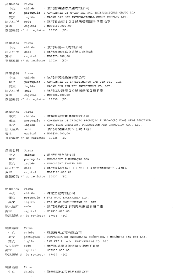 二零零三年七月十四日於商業及動產登記局——局長 譚佩雯