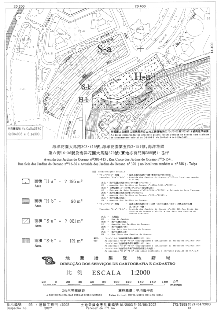(Processo n.º 6 076.9 da Direcção dos Serviços de Solos, Obras Públicas e Transportes e Processo n.º 14/2003 da Comissão de Terras)