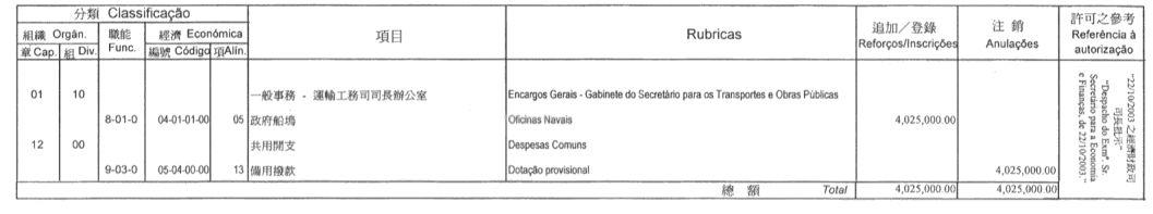 Oficinas Navais, aos 27 de Outubro de 2003. — O Director, substituto, Kong Kam Seng.