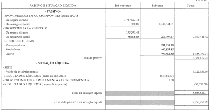 No exercício de 2002, a receita de prémios brutos desta Sucursal atingiu o valor de MOP 6 201 981,34, sendo as maiores fontes os ramos de Incêndio e Marítimo. As indemnizações brutas registaram MOP 905 333,81, tendo tido maior incidência no ramo de Acidentes de Trabalho. O resultado de exploração do ano de 2002 registou um prejuízo no montante de MOP 56 052,59.