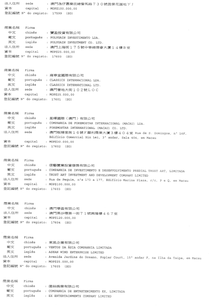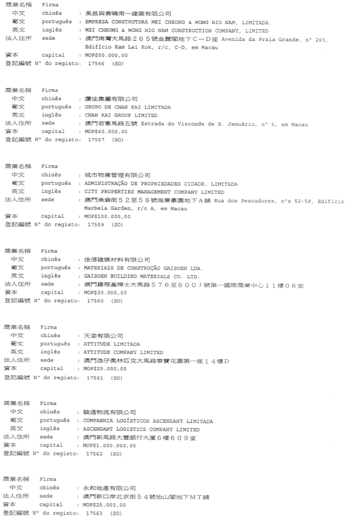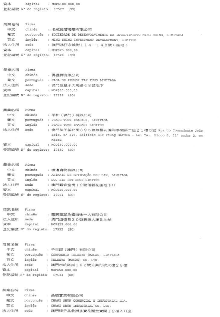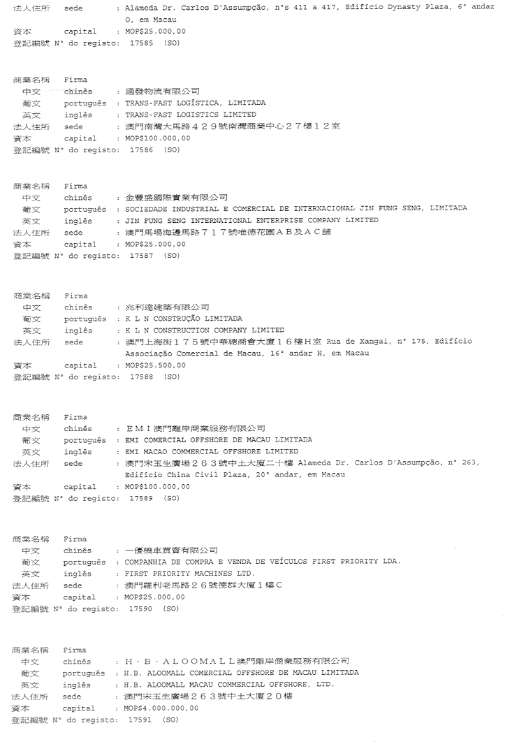 二零零三年十一月十四日於商業及動產登記局——局長 譚佩雯