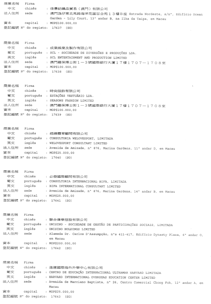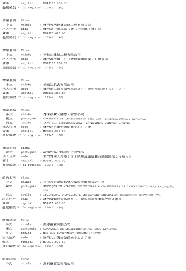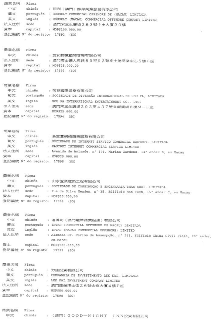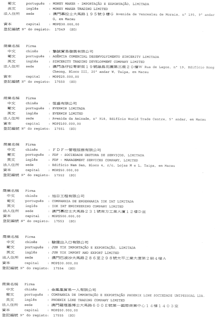 二零零三年十一月十四日於商業及動產登記局——局長 譚佩雯