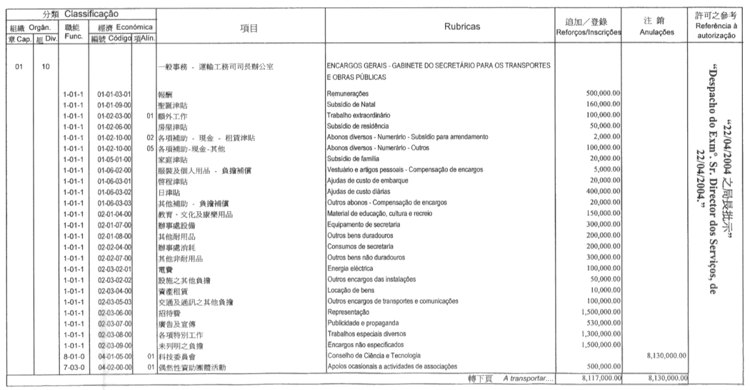 按照行政法務司司長於二零零四年四月二十二日的批示: