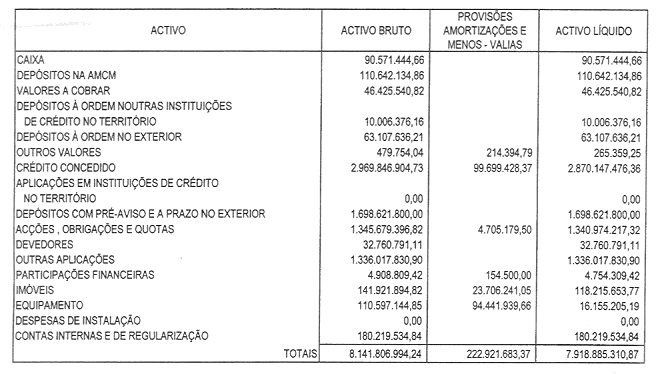 O Activo Líquido, em 31 de Dezembro de 2003, era de 13.018 milhões de patacas, menos 4,3 por cento que no final do ano anterior, apresentando o Banco um rácio de solvabilidade, calculado de acordo com as normas estabelecidas pela AMCM, de 15 por cento.