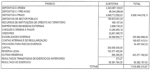 O Relatório dos Auditores Externos, tido em devida conta pelo Fiscal Único, refere que os documentos de prestação de contas apresentados evidenciam de forma verdadeira e apropriada a situação financeira do Balanço em 31 de Dezembro de 2003, bem como os resultados das operações referentes ao exercício findo naquela data, com observância dos princípios contabilisticos da actividade Bancária.