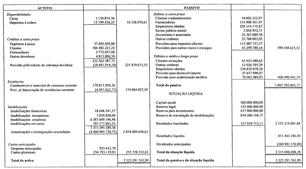 O Relatório dos Auditores Externos, tido em devida conta pelo Conselho Fiscal, refere que os documentos de prestação de Contas apresentados evidenciam de forma satisfatória a situação financeira da Companhia em 31 de Dezembro de 2003 e os resultados das operações referentes ao exercício findo naquela data, em observância dos princípios contabilísticos da empresa e dos termos do Contrato de Concessão.