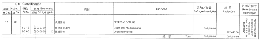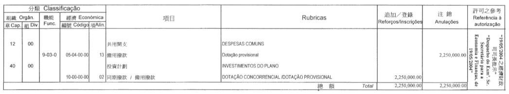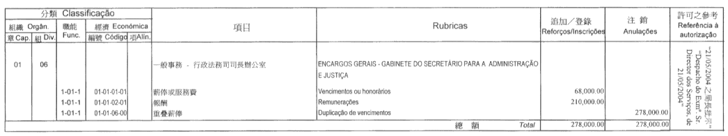 按照二零零四年五月十二日行政管理委員會主席的批示及經同年同月十九日經濟財政司司長確認: