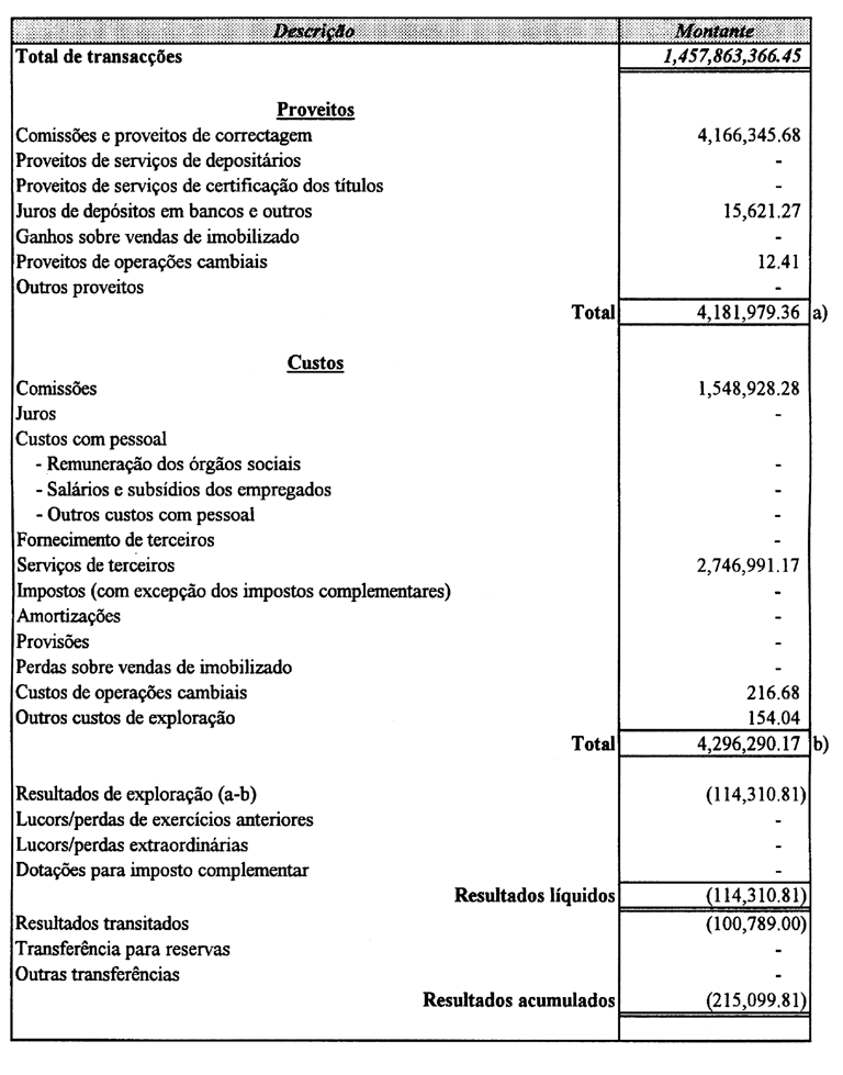 Demonstração de resultados referente ao exercício de 1 de Janeiro de 2003 a 31 de Dezembro de 2003