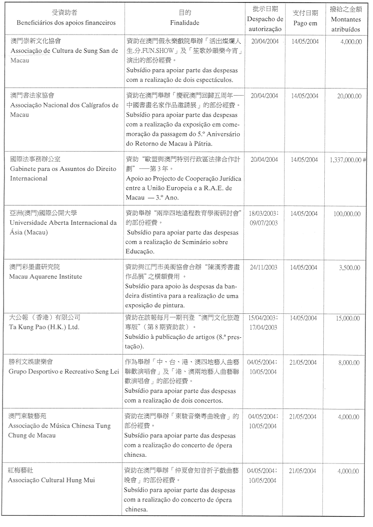 | Jornal Tribuna de Macau | 23.03.2004 | $ 297,000.00 | |
