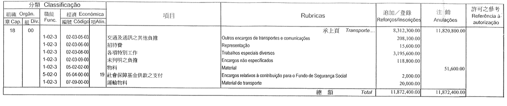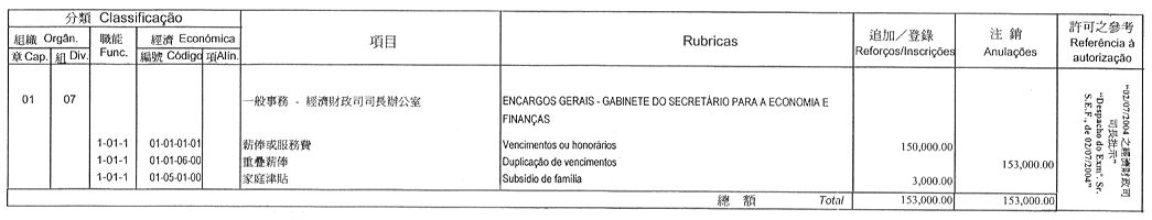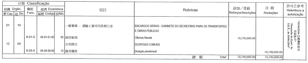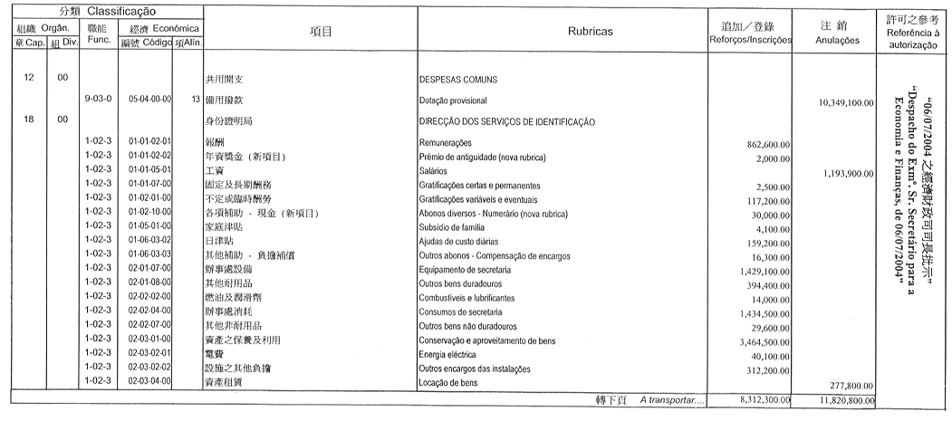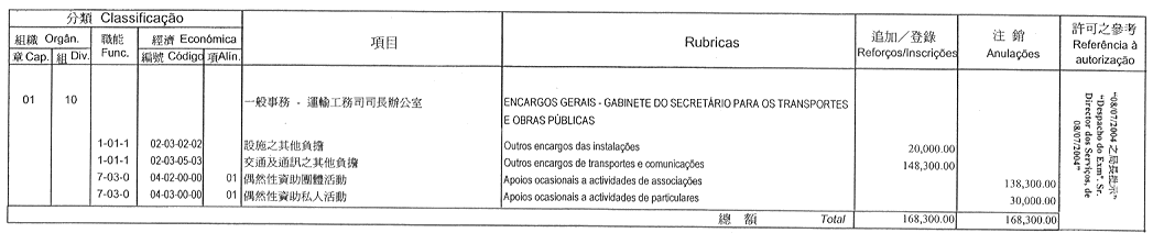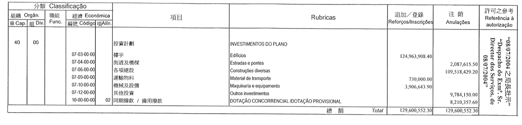 | 經濟分類 | 開支名稱 | 追加 澳門幣 |