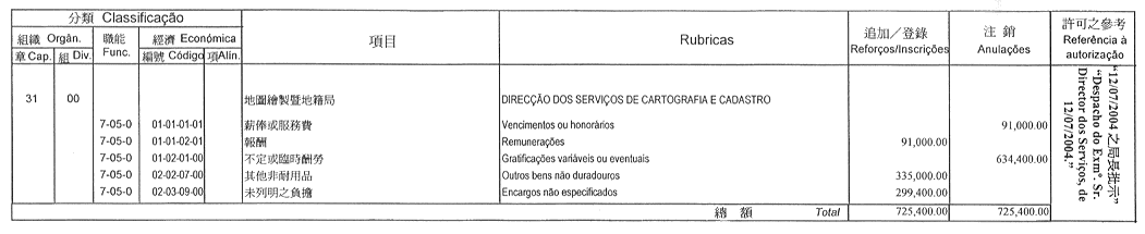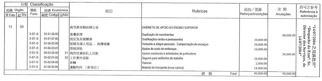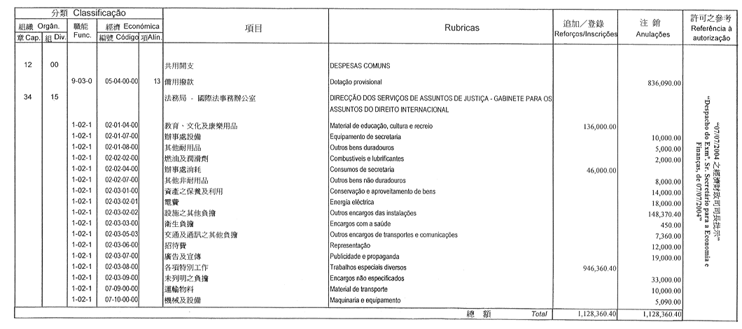 根據一九九三年九月二十七日第53/93/M號法令第十九條規定,茲公佈立法會執行委員會於二零零四年六月十六日議決所批准的立法會二零零四年財政年度本身預算之修改: