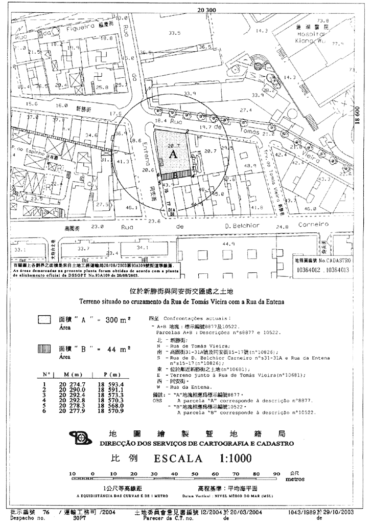 (Processo n.º 2 395.1 da Direcção dos Serviços de Solos, Obras Públicas e Transportes e Processo n.º 15/2004 da Comissão de Terras)